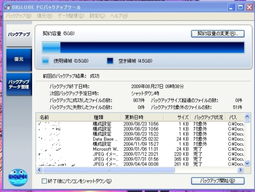 別にこれからもMOにバックアップすれば済むのでは?と思われるかもしれませんが MOもとい光学メディアは何でもかんでも全上書きなので 非常にバックアップに時間がかかるんです; 1ヶ月に1回くらいならそこまで苦ではないですが、毎日はさすがにきつい!というか無理だ!! 突然の故障の事も考えて、毎日がいいですね♪ これは自動的に毎日やってくれるのがいいです♪きっとここが重要なんだなあ・・・。