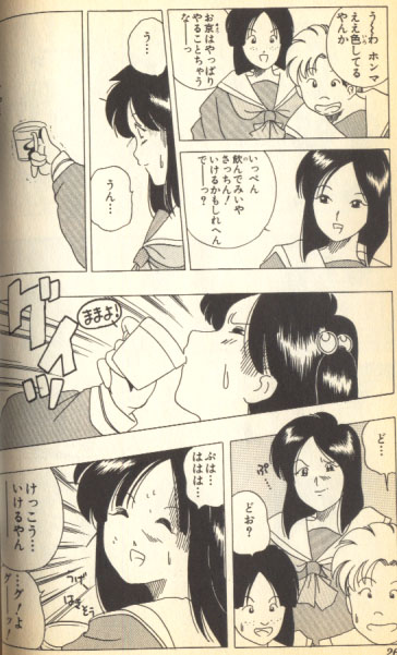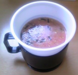 | 前にうっかり消してしまった日記のリメイク版であ〜る! 昔ジャンプで連載していた(といっても短いけど)「元気やで!」で出てきた 毒ドリンク。「特製おすまし」!! いじめを題材にした漫画で、このシーンはもちろん、わざと困らせるためにやっている。 でも思った。一体どんな味がするんだろう。明らかにまずそうな組み合わせはともかく お茶とふりかけってけっこう合いそうな気がするし…。