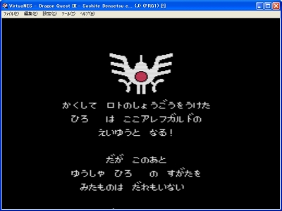 | 花粉でなんだかんだで保留していたゲーム日記。 せっかくのクライマックスなのに何だか白けてしまいましたかね;(・ε・`*) でも保管庫に入ったらそれも関係ないのだ!(開き直り!) 再びいつものテンションで書き綴っていきたいと思います!! 次回はちゃんと病院行きます(´Д`;)ノ)) ゾーマを倒した一行!意味深な言葉を残して滅んだゾーマですが、 それはまた他のシリーズで話が続くのですね!勇者ロトの話の最終末です!!